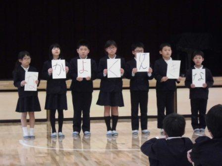 3学期終業式と令和6年度修了式が行われました。前期課程の2名の児童には前期課程修了証書が手渡されました。校歌を大きな声でしっかりと歌った4人は本当に堂々として素晴らしかったです。今年度1年間の学習で心も体も大きく成長したことを実感している歌声でした。来年度もみんなで協働して、がんばりましょう。