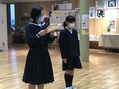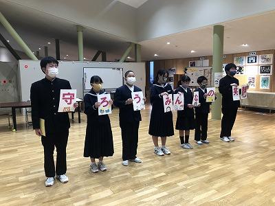 保健体育委員会は、コロナが治まらない中、みんなが明るく楽しく過ごすことができるように「守ろうみんなの笑顔」と題して、メッセージを披露しました。同時に来週から行う「手洗いオリンピック」についてのお知らせがありました。図書委員会は、読書MVPを発表しました。執行委員会は、卒業生とのオリエンテーションの企画についてお知らせしました。