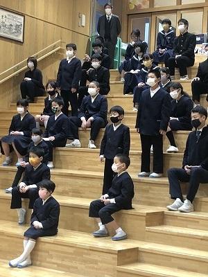 9年生の卒業式が近づいてきました。今日は、在校生で「別れの歌」の練習をしました。一人一人が心を込めて体育館に響きわたる声で歌えるように練習をしました。音楽科担当の先生からは「とても上手に歌えているので、当日は、自信をもって歌ってください。」というアドバイスをいただきました。