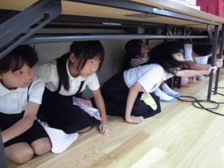 休み時間中の地震を想定した避難訓練を行いました。今回は、地域の方と一緒に避難をしました。