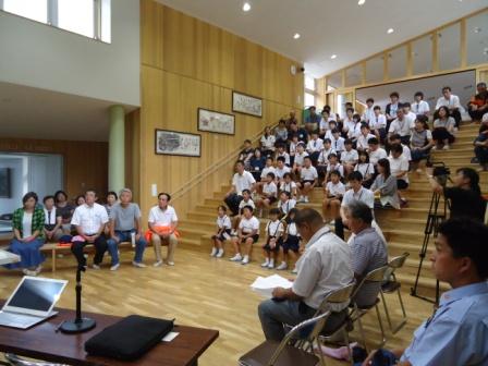 本部の方々が、だんだん広場に卓球台を設置してくださいました。子どもたちは、久しぶりに前期対後期でハンディをつけながら対戦し、歓声を上げて楽しんでいました。校舎に子どもたちの声が響くというのはいいものです。授業では、避難所から戻ってきた子どもたちが、「分かりやすい」「落ち着く」と話しながら授業も頑張っていました。震災後初めて校舎に入った生徒は、「校舎に被害がほとんどないのでびっくりした」「避難した時に比べて道がすごくよくなっていて、土木の力はすごい!」と話していました。久しぶりの大谷で、たくさんの方々の支援に改めて感謝したことと思います。