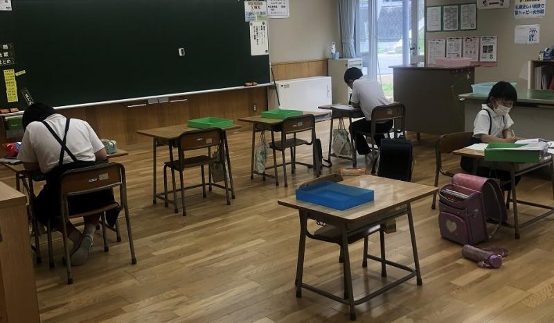 ミニバスが始まるまでの教室には、各自で学習している姿があります。