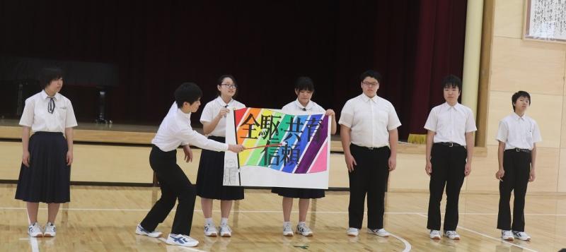 9年生の学級目標「全駆共育信頼」の中には、あるフレーズが隠れているそうです。