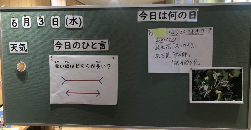 本日は、事務の北岡が担当しました。楽しんで作成できたという意欲がかわれ、明日も担当します。目の錯覚って不思議ですね。