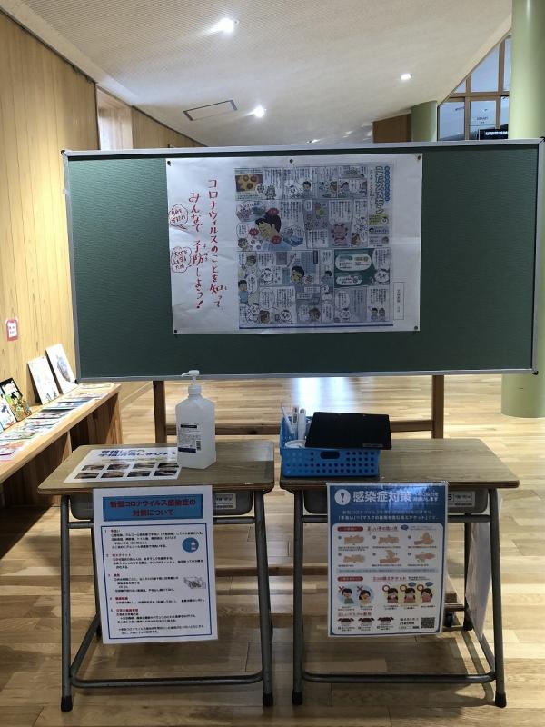 登校が再開されて1週間。体調不良を訴えることもなく、全員元気に過ごすことができました。だんだん広場入り口に、検温表提出と消毒コーナーがあります。このコーナーに先生方から子どもたちへのメッセージを掲示しています。本日は、西養護教諭が写真のような掲示を行いました。月曜日は、西浩一教諭からのメッセージを掲示します。お楽しみに。