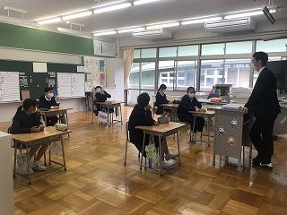 8年生と6年生が珠洲市内の学校とオンラインで授業を行いました。協働的な学習の充実のため、多様な意見や考え方に触れる機会としてオンラインでの学習を行っています。今日は、社会科・道徳・総合的な学習の時間で行いました。児童生徒の考えを深めることができました。