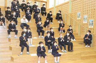 最後に後期ブロックの3名の生徒が、集会を終えての感想を発表しました。「この休みは、単なる休みではないことがわかりました。自分を見つめる機会にしたいです。」「こんな風に全体の場で自分の考えを発表することができて、休校明けには新しい大谷小中学校にしていけそうな気がします。」「休校中、学習にしっかり取り組みます。」など、頼もしい感想を聞くことができ、担任の先生方もうれしそうでした。