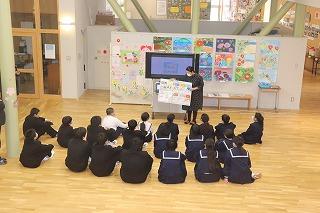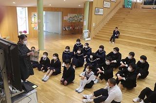 昨日に引き続き、今日は中・後期ブロックの学校図書館オリエンテーションが行われました。司書の松原先生のお話に反応しながら、本の分類について確認しました。最後に井上智也さんがお礼の挨拶をしました。
