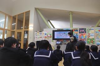 8年生と6年生が珠洲市内の学校とオンラインで授業を行いました。協働的な学習の充実のため、多様な意見や考え方に触れる機会としてオンラインでの学習を行っています。今日は、社会科・道徳・総合的な学習の時間で行いました。児童生徒の考えを深めることができました。