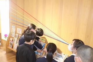 今日は、三崎中学校と交流学習を行いました。国語の授業では、ペア学習をしたり、机を合わせて4人で話し合ったりして、協働して学ぶことで、自分の考えを深めていました。また、総合的な学習の時間では、大谷チャームの制作を一緒に行いました。三崎中学校の生徒のみなさんに作り方やコツを教えることで、自然と会話が弾んでいました。