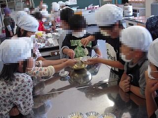 2年生は、先日掘り起こしたサツマイモを使って蒸しパン作りに挑戦しました。