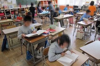 当番が準備している間、当番以外の子ども達は、各教室で静かに読書をしながら待っています。