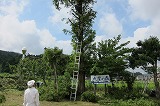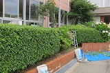 大屋公民館から8名の方々が来校して下さいました。今回は、「大屋の森」を中心に草刈りや枝打ち剪定作業をしていただきました。お陰様で「大屋の森」が見違えるほどすっきりとした庭園に復活しました。暑い中、本当にありがとうございました。玄関前も綺麗になりました。