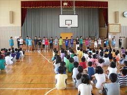 7月13日の大屋っ子タイム(全校集会)は、5年生の学年発表でした。