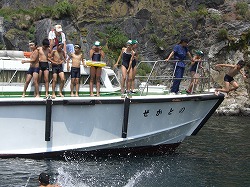 船から飛び込んだり、磯の生き物たちを探したりして