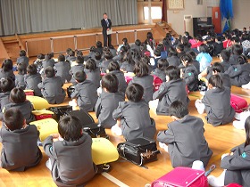 全校集会をしました。