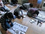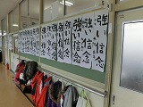 始業式の後は全学年が「書き初め」をしました。作品は廊下に貼ってあります。