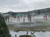 今朝はガチガチに凍りました。駐車場も運動場もツルツル!
