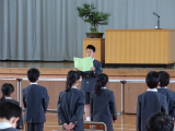 「はい」と,大きな声で返事をして壇上に上がり,卒業証書を受け取る卒業生の姿に,体だけでなく,心も大きく成長したことを感じました。また,お別れの言葉でも練習したことを出し切ることができました。この全力で取り組んだ経験を生かして,中学校では勉強や部活を通してさらなる成長と活躍を期待しています。