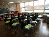 震災の影響で現在「輪島市6小学校合同仮設校舎」で学校生活を送っています。