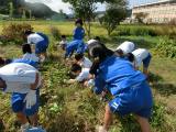 1・2年生が6月に植えたさつまいもが,収穫の時を迎えました。