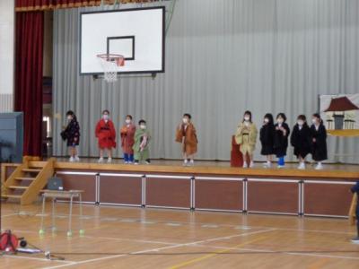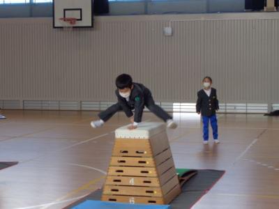 「わらしべ長者」の劇や、合唱、跳び箱を披露しました。