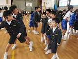 全児童参加の「じゃんけん列車」。上級生も真剣。さて勝ったのは?