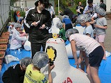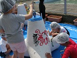 北陸地方整備局金沢湾岸・空港整備事務所のご協力のもと、テトラポットに絵を描きました。地元の建設業者のみなさんにもお手伝いしていただきました。