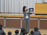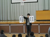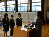 先月の輪島市スピードウォーク大会での「ベストフォーム賞」に入賞した3名の6年生の表彰式がありました。全校の仲間から大きな拍手をもらいました。
