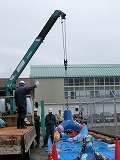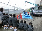 ちょうどトラックに運び込もうとするところを1年生が見学しました。あの重いテトラポットを軽々と乗せるトラックに驚いていました。