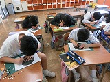 1年生は小学校初めての授業参観。大きな声で上手に音読できました。後ろで見守っているお父さんお母さんの方が緊張していたかもしれません・・・