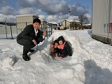 5年生が「かまくら」を作りました。さっそく低学年の子どもたちが嬉しそうに入っていました。
