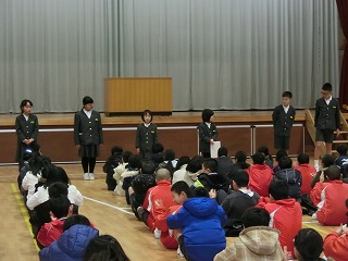 3学期始業式が行われました。3学期は来年度の準備の学期でもあります。学年代表の6名の児童が3学期にがんばりたいことを発表しました。「みんなにあいさつをする」「積極的に行動する」「始めから諦めてしまう弱い心を捨て、頑張り抜く」など、全校児童の目標となるような立派な内容でした。