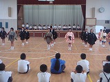 恒例の引き継ぎ式が行われました。5・6年生が引き継ぐ4年生にまだらの披露をしました。6年生代表の西さんが「しっかり練習して、伝統を引き継いでください。」とあいさつをしました。