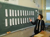 2017年9月30日 17時24分1学期の俳句教室に引き続き、秋の季語での俳句教室が行われました。地域の新橋さんを講師にお迎えし、子どもたちの作品をみんなで読み比べ、気に入った作品を各自が選びました。そして、選んだ理由を発表し合いました。1学期よりもよく考えた作品が増えたと新橋さんにも褒められました。