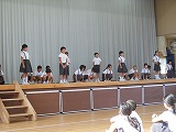 2学期最初の全校集会「大屋っ子タイム」が行われました。今回は3年生の学年発表がありました。ウォーミングアップ登校日を使った短い練習期間にも関わらず、歌あり演奏あり音読ありの盛りだくさんの発表にみんな感心して見ていました。音読はことわざをいろいろな読み方で発表し、リコーダー演奏はリズムに合わせて動いたり、まるで鼓笛パレードのドリル演奏を見ているようでした。終わった後の感想発表ではたくさんの感想がありました。