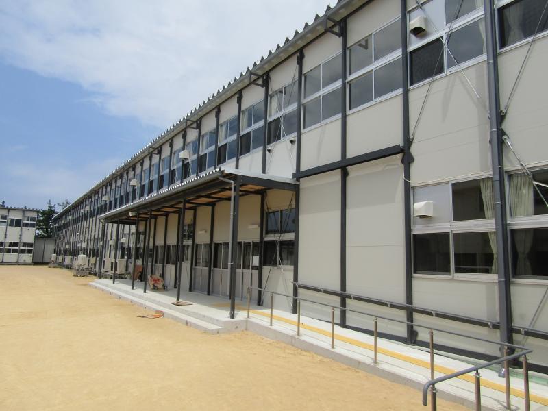 震災の影響で現在「輪島市6小学校合同仮設校舎」で学校生活を送っています。
