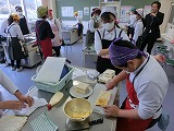 家庭科の最後の授業はサンドイッチの調理実習でした。6年生は手際よく協力しながら作っていました。
