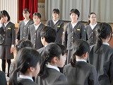 在校生が心を込めて「大空がむかえる朝」を歌いました。
