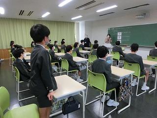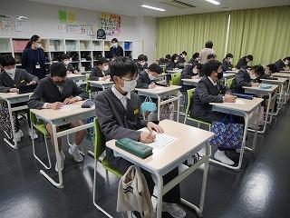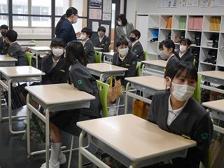 6年生は4月から入学する輪島中学校へ行き、英語の体験授業を受けました。中学2年生の英語での学校紹介のVTRを視聴した後、入学してから頑張りたいことを英語で伝える学習をしました。自分が入りたい部活や勉強したい教科、楽しみな行事などを英語で話したり、書いたりしました。中学校の先生の指示がほとんど英語でしたが、6年生はしっかり聞き取り、緊張しながらも楽しんでいるようでした。