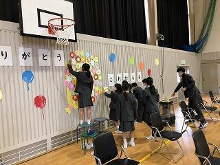 2021年2月24日 17時13分明日の送る会に向けて、4・5年生が体育館の飾り付つけや掃除をしました。飾りやプレゼントは低学年も作りました。明日が楽しみです。