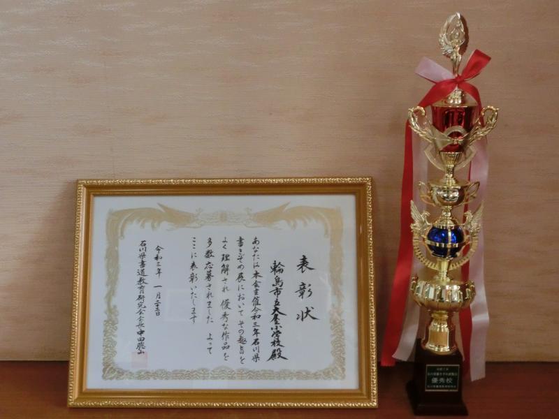 23日に金沢21世紀美術館において令和3年石川県書きぞめ展の表彰式が行われ、本校が「優秀校」を受賞しました。
