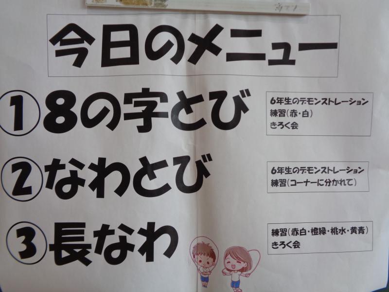 明日はいよいよ校内なわとび大会です。先週から5年生や6年生が低学年に跳び方を教えてくれています。
