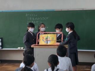 3年生は登場人物やナレーターなど役割を決め、自分たちで考えたメロディーを付けた歌を入れるなど1年生が楽しめるように工夫をしていました。