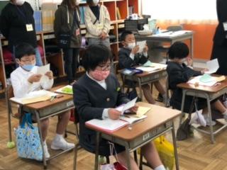 今年度はコロナ禍のために地域の方の「読み聞かせボランティア」が中断しています。そのような中、3年生のこのような活動は1年生にとってとてもうれしいものです。みんな真剣に聞いていました。
