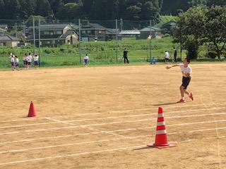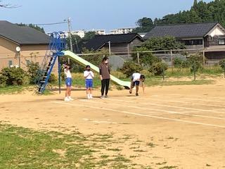 爽やかな秋晴れの中、26日の輪島チビッコオリンピックに向けて参加児童がジャベリックボール投げ、走り幅跳びなどの練習に頑張っています。
