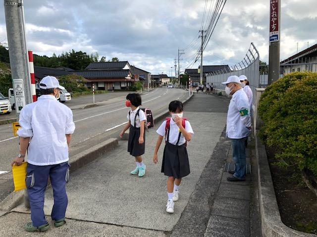 2020年9月15日 09時22分毎月15日は地域の民生委員さんたちが校門前に交通安全街頭指導に立ってくださっています。子どもたちの元気なあいさつに皆さんは笑顔で応えてくださいました。