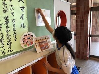 2020年7月2日 09時42分七夕がもうすぐです。1年生は短冊に願いごとを書きました。みんなの願いごとは廊下に掲示されました。