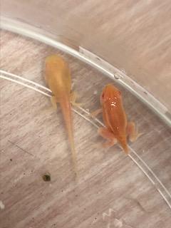 白いオタマジャクシがカエルらしくなってきました。もうそろそろ田んぼに戻そうかと思っています。