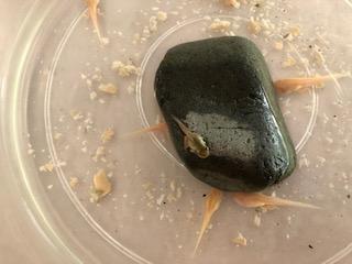 先日地域の方からいただいたオタマジャクシに手と足が生え、もうすぐカエルになりそうです。白色のオタマジャクシはまだ時間がかかりそうですが小っちゃい足は見えてきています。